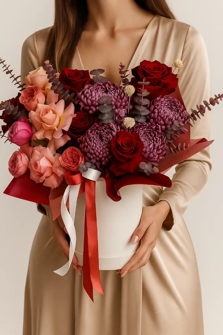 Цвет и вид букета может незначительно отличаться от фото, но не волнуйтесь: перед отправкой мы пришлем вам фото готового букета.