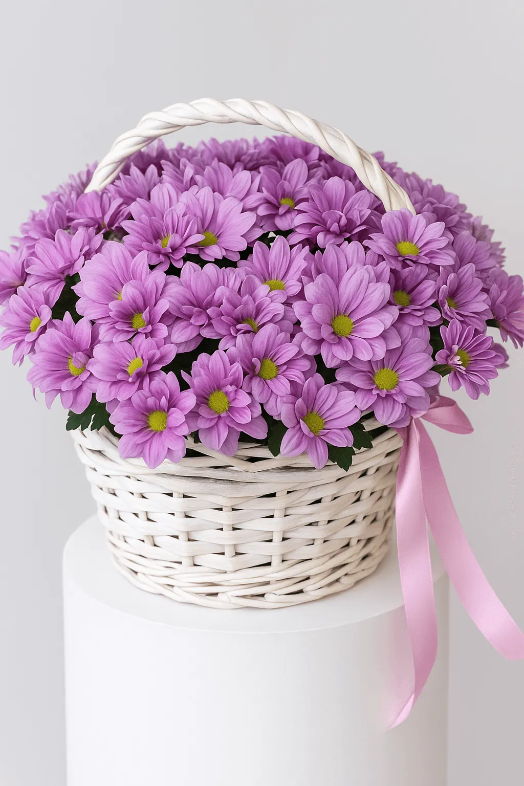 Композиция «Serenity» поможет выразить влюбленность или пожелать удачи на день рождения. Корзинка фиолетовых хризантем символизирует нежность, теплые чувства и уважение. Изысканный цветочный презент уместен на день рождения, свадьбу, 8 Марта или годовщину встречи, бракосочетания. Доставка поможет сделать запоминающийся сюрприз.