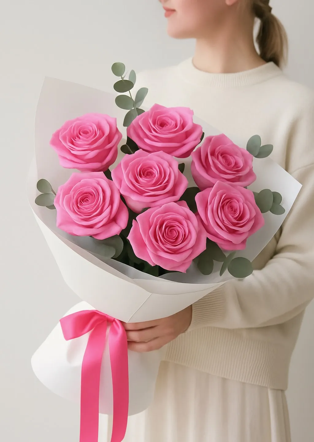 Букет из 7 розовых роз – отличный способ подарить любимому человеку хорошее настроение и яркие эмоции. Нежная цветочная композиция уместна для выражения любви, признательности и восхищения, можно преподнести любимой, маме, сестре, племяннице или дочери. Лаконичное оформление подчеркивает красоту «королевы цветов».
