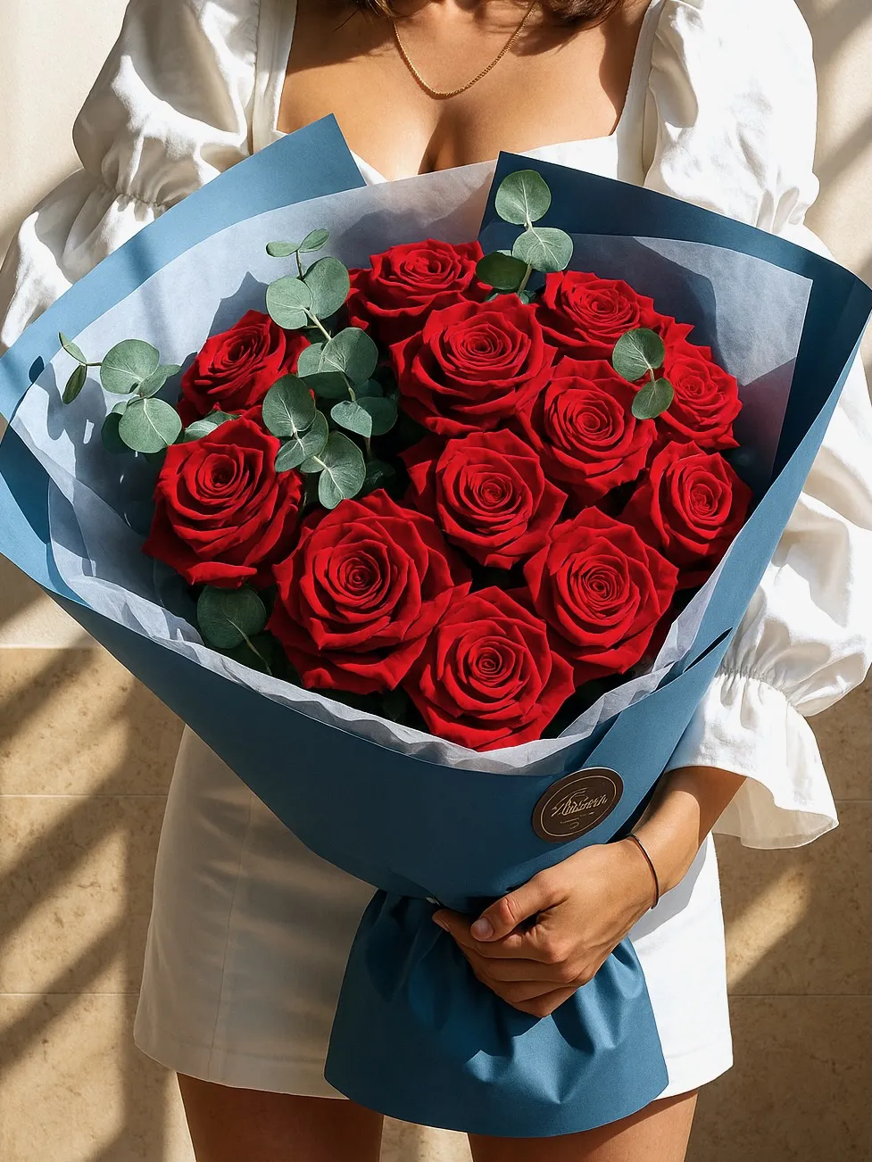 Букет из красных роз 50 см станет изысканным презентом на день рождения, свадьбу, помолвку или юбилей. Роскошная «королева цветов» считается универсальным способом для признания любви или выражения уважения, признательности. Алый оттенок бутонов расскажет о сильных любовных чувствах, поможет сделать невероятный сюрприз.