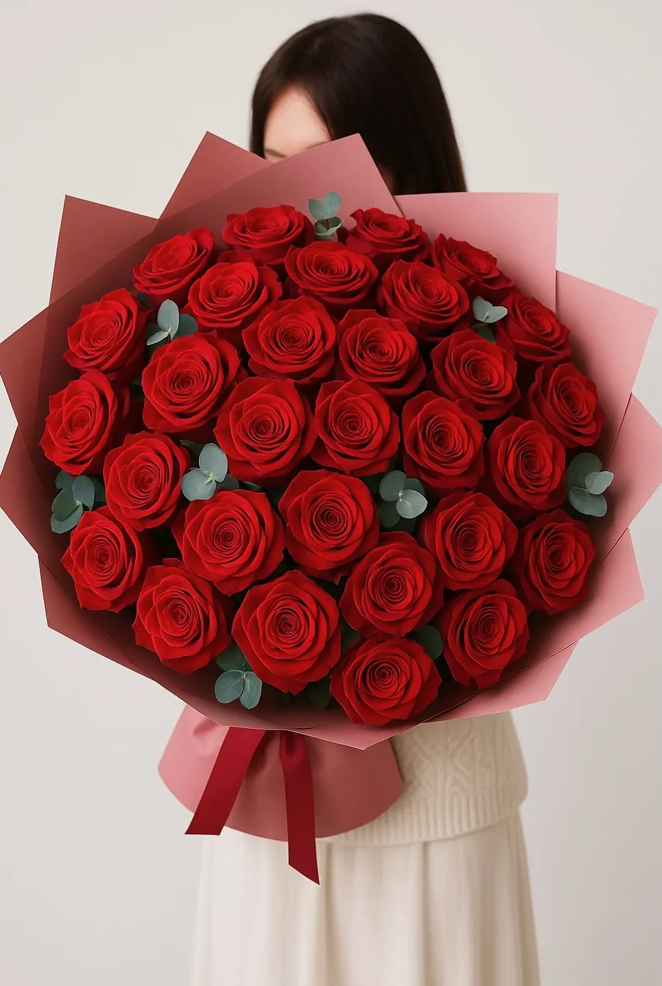 35 красных роз дарят любимым людям на день рождения, свадьбу, юбилей и другие торжественные мероприятия. Это охапка великолепных цветов, поражающих своей свежестью и натуральной красотой. Тонкие лепестки источают волшебный аромат. Красный цвет считается признанием в искренней любви и преданности, пожеланием благосостояния и успеха во всех делах.