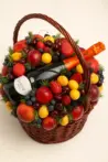 Состав: игристое вино Cinzano Prosecco — 1 бутылка, абрикосы, нектарин, голубика, черешня, ежевика, клубника, макаруны, еловые ветки.