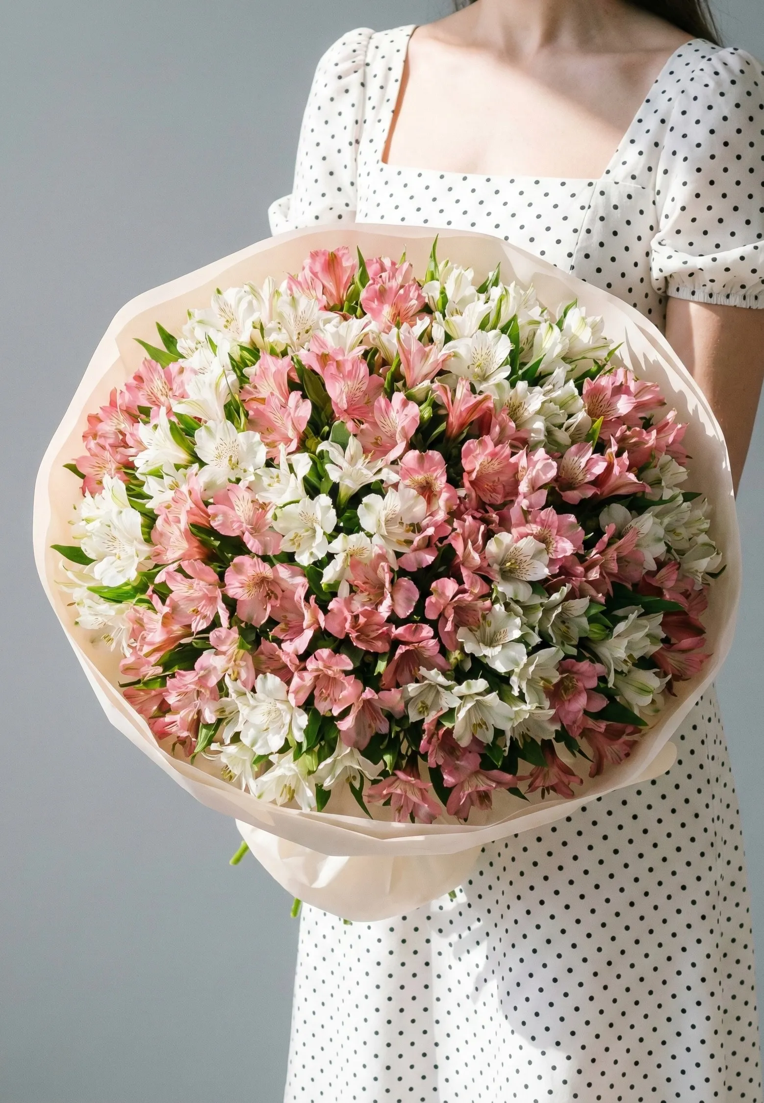 51 альстромерия – это яркая цветочная композиция, которая создаст атмосферу радости и положительных эмоций. Бутоны выражают привязанность, заботу, искреннее отношение. Стильное оформление изысканное дополняет природную красоту цветов. Букет подойдет для поздравления с днем рождения, важным мероприятием.