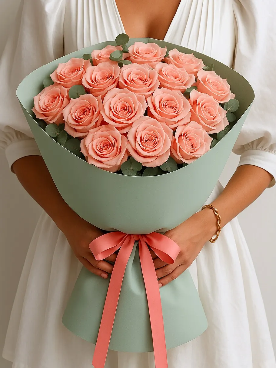 Розы с эвкалиптом очень нежное красивое и вкуснопахнущее сочетание! Покупала любимому человеку этот букет, он и я остались очень довольны этим шедевром)