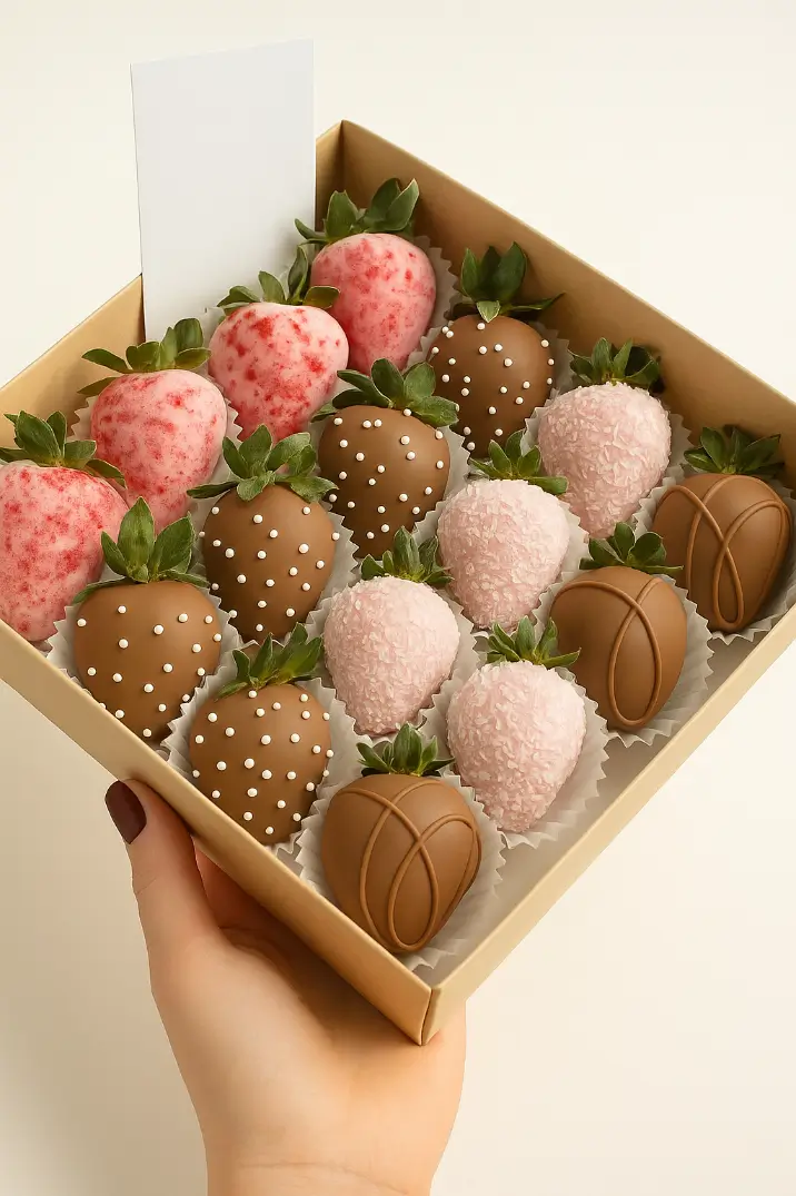 Құрамы: шоколадпен қапталған құлпынай – 16 дана.