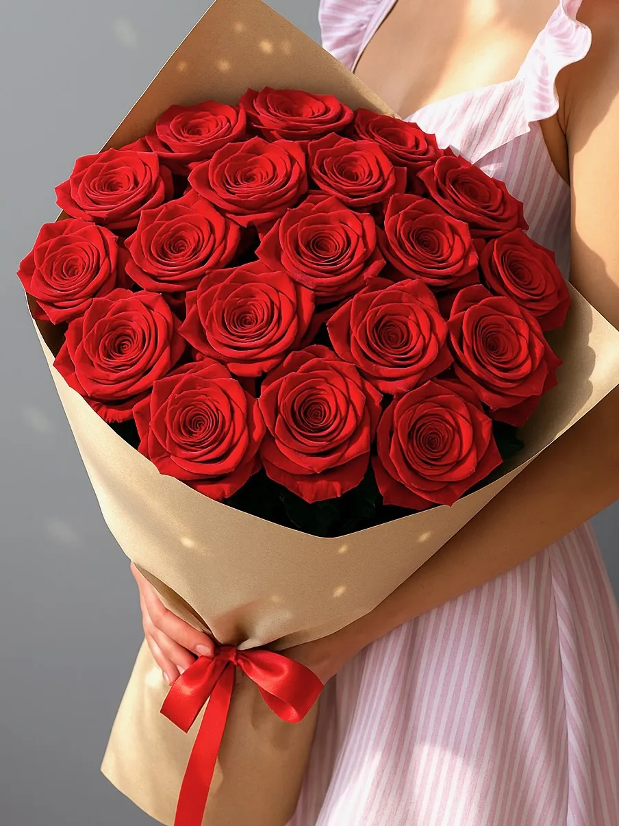 Букет из 19 красных роз – это символичное предложение быть вместе всю жизнь. Удивительное сочетание алого оттенка и количества бутонов говорит о настоящих, сильных любовных чувствах. Изысканная объемная композиция также подходит для поздравления с юбилеем, важным событием в жизни получателя.