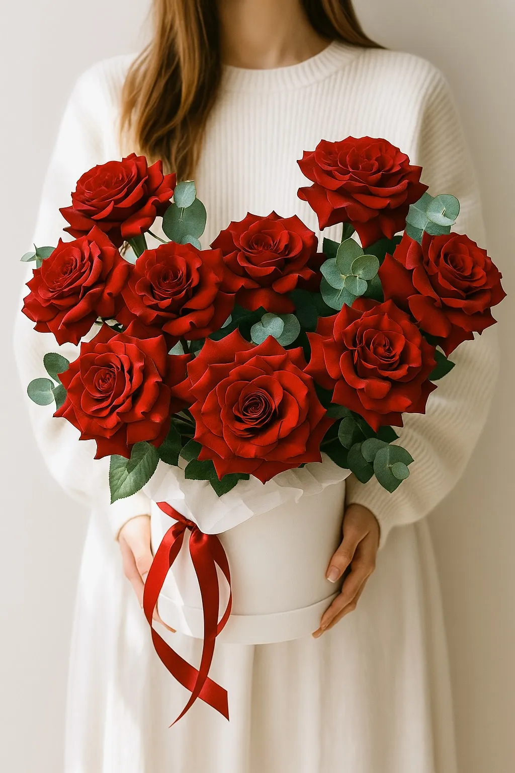 Состав: розы — 9 шт, эвкалипт.