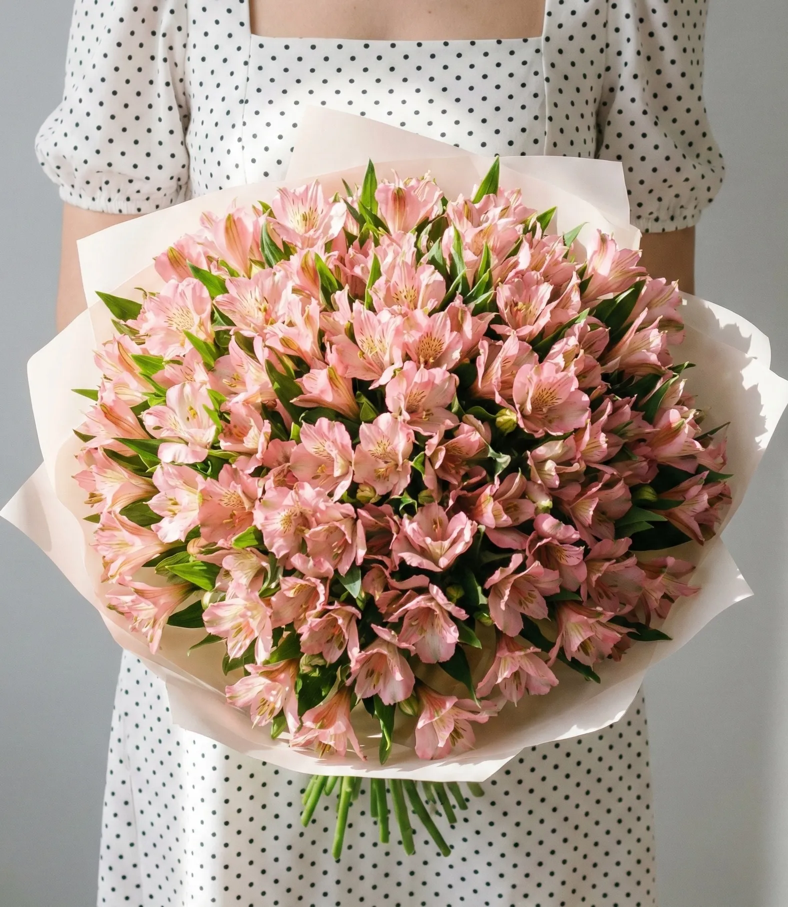 Букет из 25 альстромерий символизирует крепкую дружбу и преданность, приносит удачу, процветание и богатство.